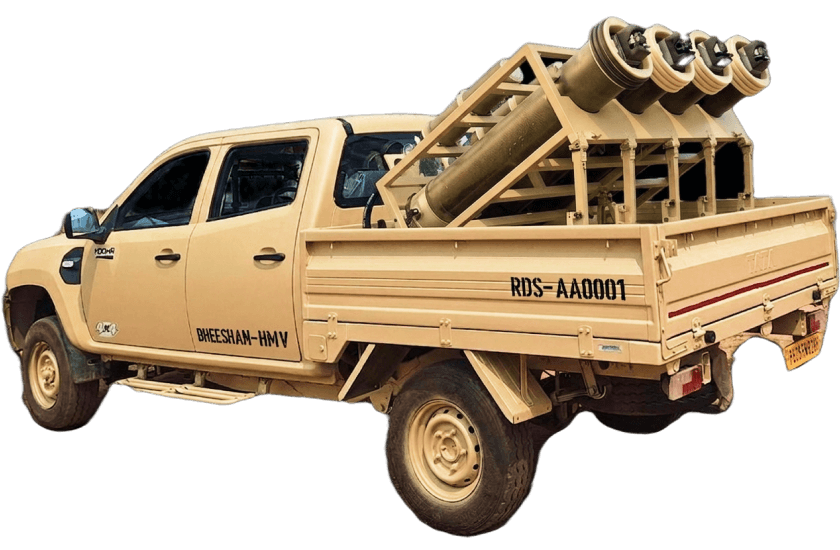 With four independently controlled launch barrels and the ability to integrate into multi-system swarm missions, Bheeshan HMV enables frontline units to neutralize deep, hardened, and armored targets with assured lethality — without slowing the advance.